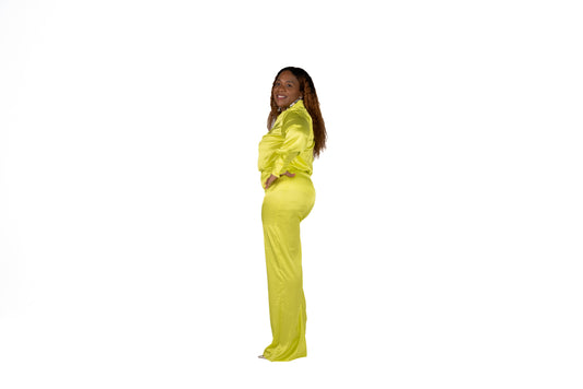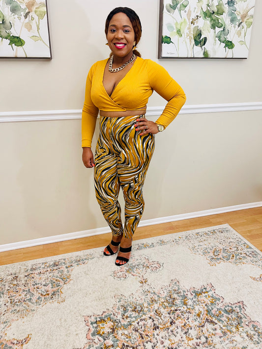 Andrea Yellow Ribbed Tie Crop Top & Print Leggings Set