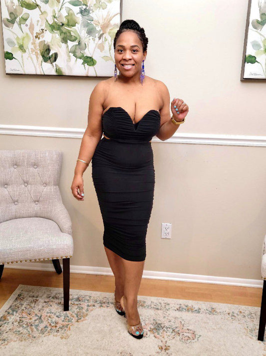 Latona Sweetheart Strapless Ruched Crop Top Skirt Set