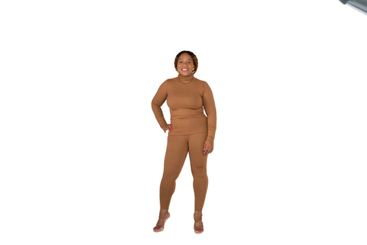 Deep Camel Microfiber Turtleneck Legging Set