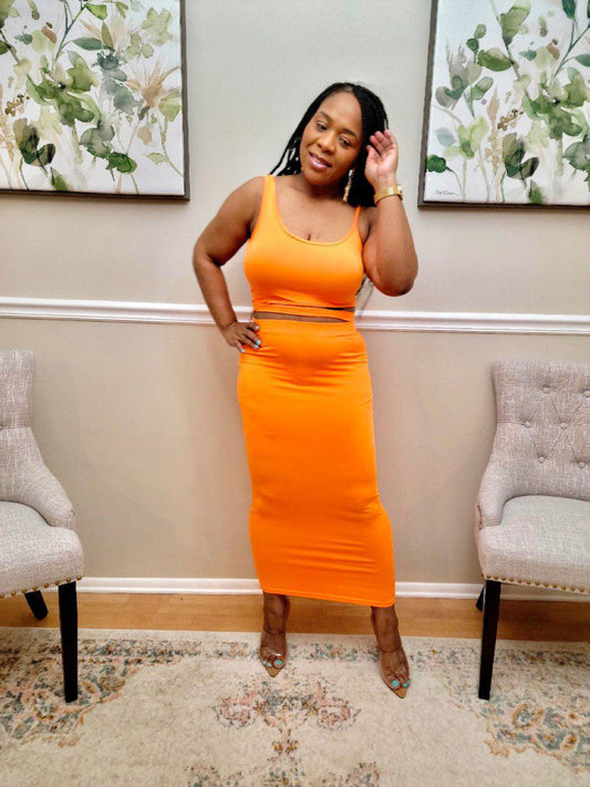 Syn Orange Cut Out Crop Top Skirt Set