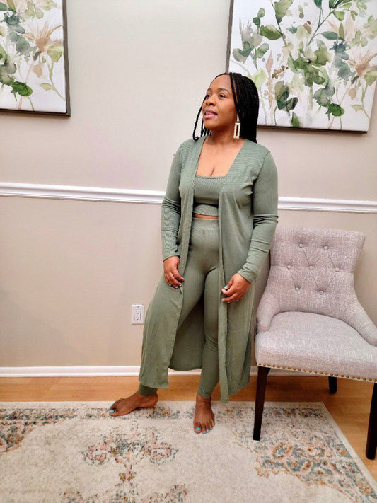 NixieThree-Piece Cardigan Set With Crop Top And Leggings
