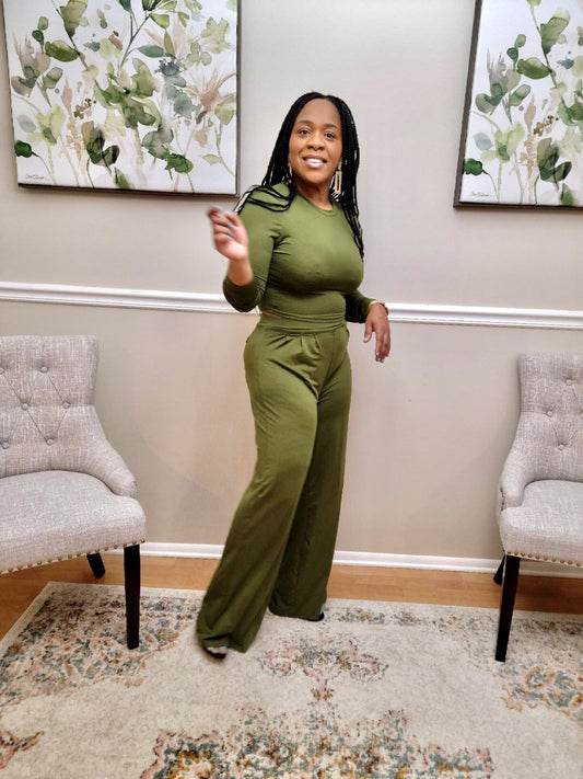 Electra Three Piece Cardigan Pants & Crop Top Set