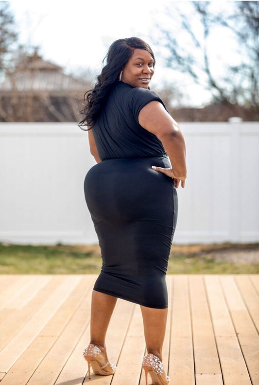 Shivani Trendy Shoulder Pad Crop Top Skirt Set