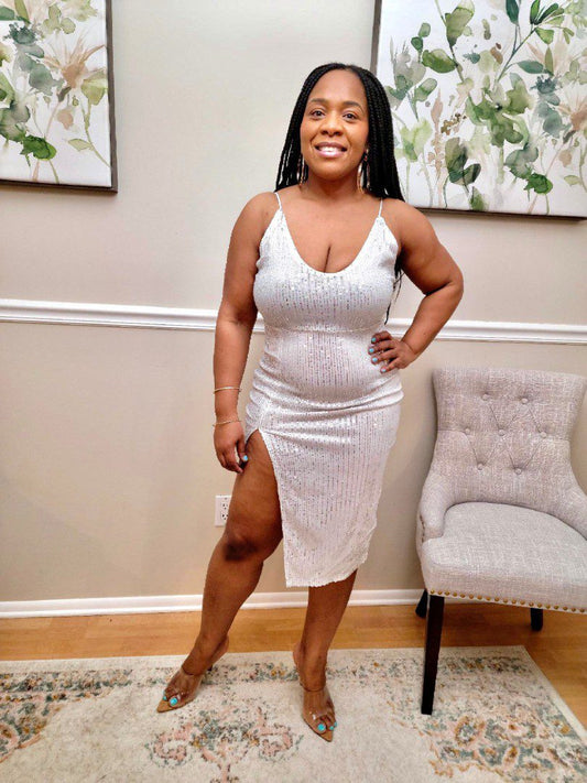 Adore Sequined Sleeveless Side Slit Dress
