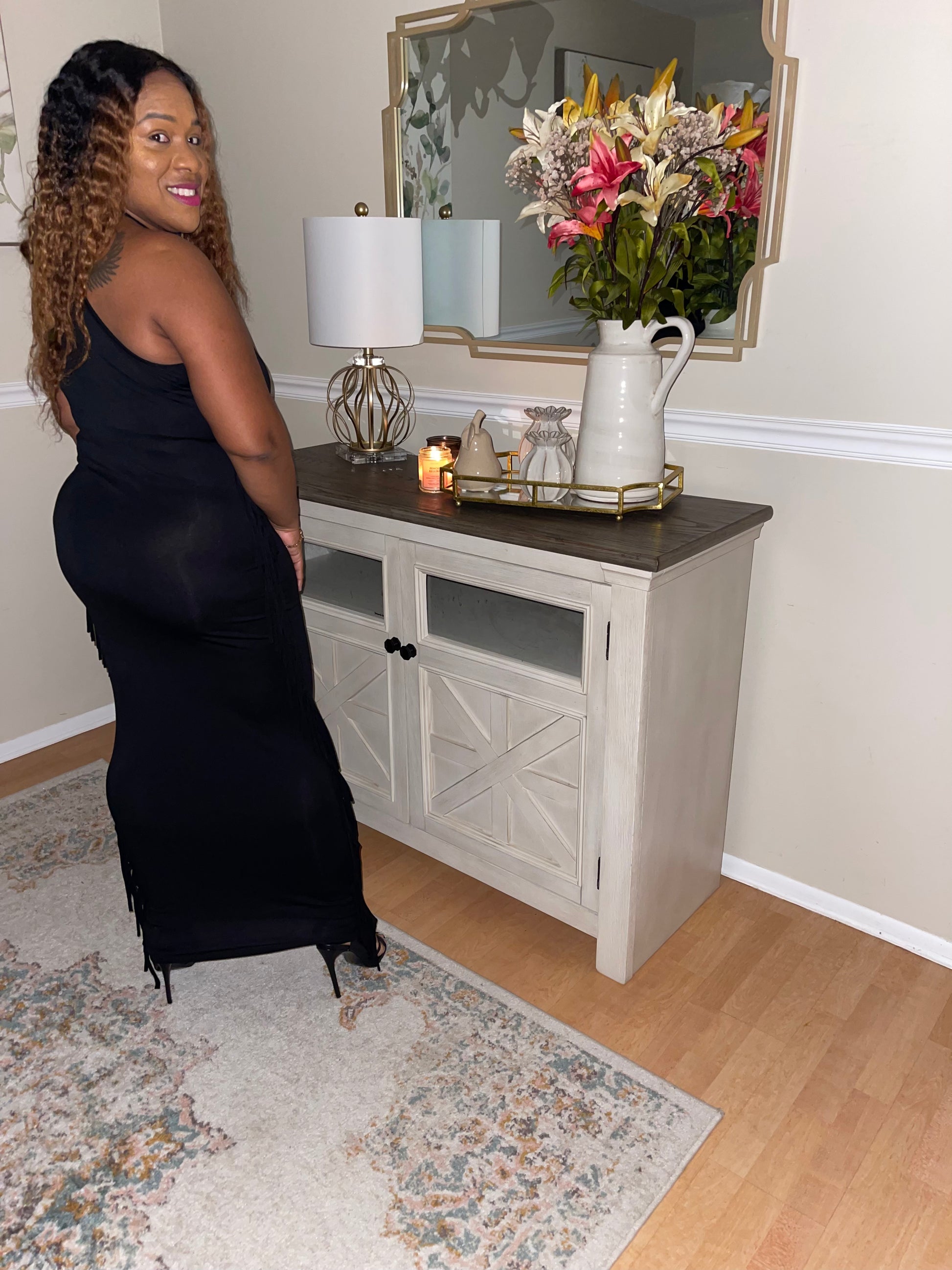 When beauty meets elegance, style yourself with this cutie. Bodycon maxi dress with halter neckline . This body hugging fringe beauty is a must have. 95% Poly 5% Spandex.